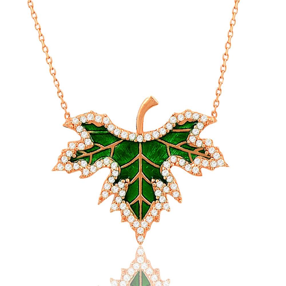 925 Ayar Gümüş Çınar Yaprağı Kolye