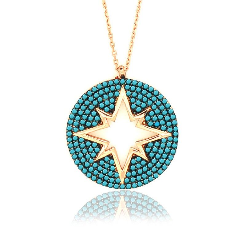925 Ayar Gümüş Turkuaz Taşlı Kutup Yıldızı Kolye